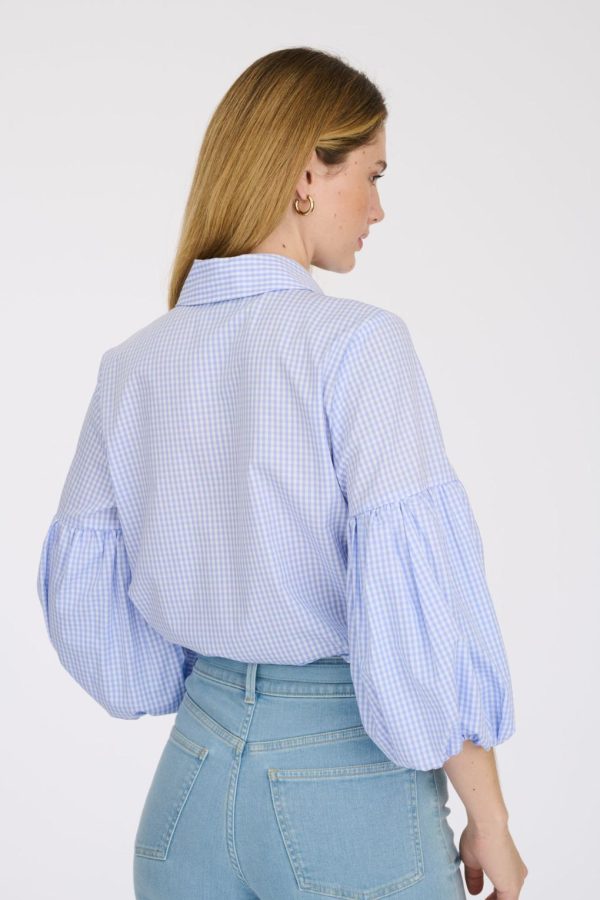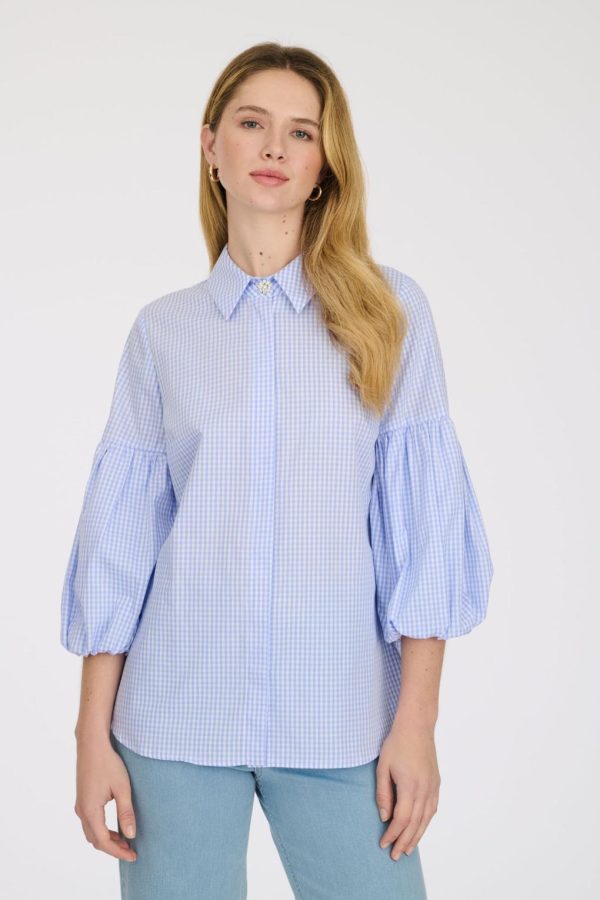 Weill gingham check cotton shirt with puffed sleeves. – Cotton poplin shirt – Shirt collar – Collar fastens with Weill jewelled button – Chest darts – 3/4-length puffed sleeves – Concealed button fastening – Length: 65 cm for a size 1 Mieka is 178 cm (5’10”) tall and is wearing a size 1. Ref. 127016 We disclose the provenance of this product in a transparent manner. This shirt was designed in Paris in the company’s historic workshop. This product is Oeko Tex certifiedMain fabric: