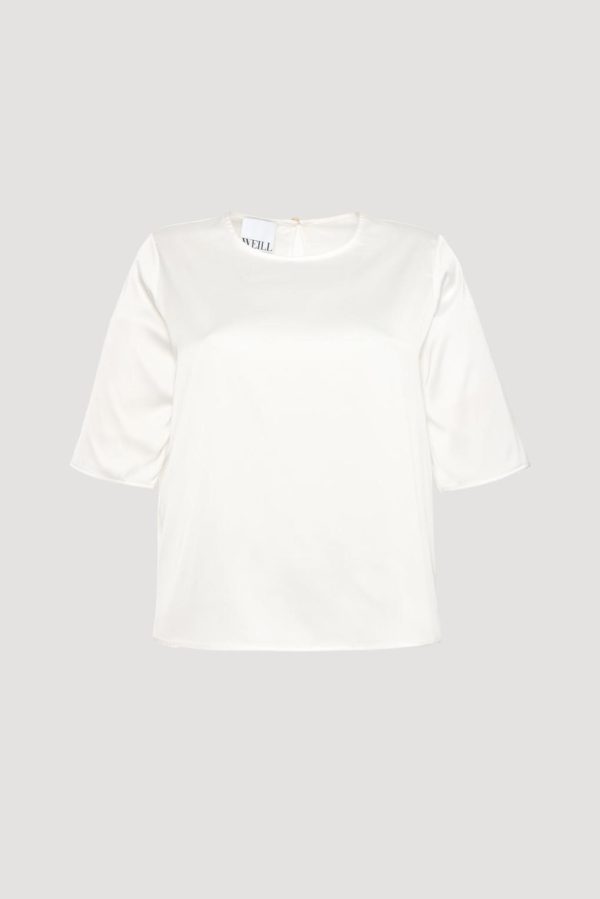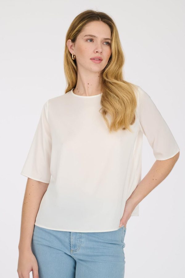 Flowing top with a round neckline in a slightly boxy cut for a modern and elegant look.