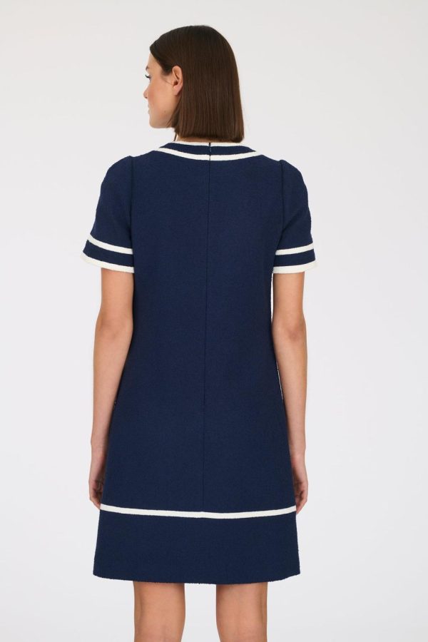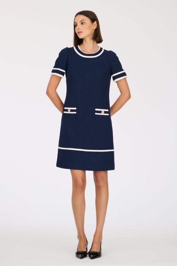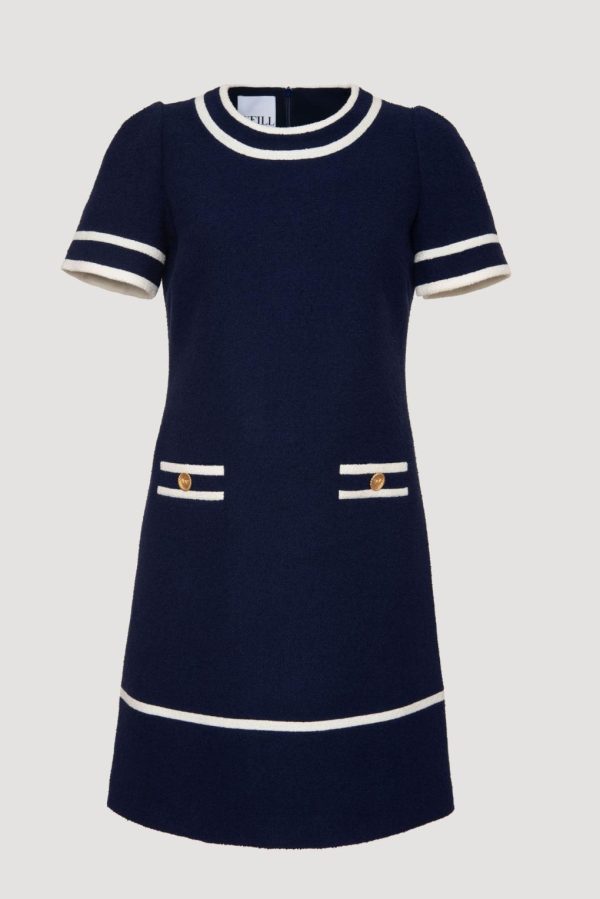 Short-sleeved, straight-fit, bouclé dress with custom Weill buttons and faux piped pockets