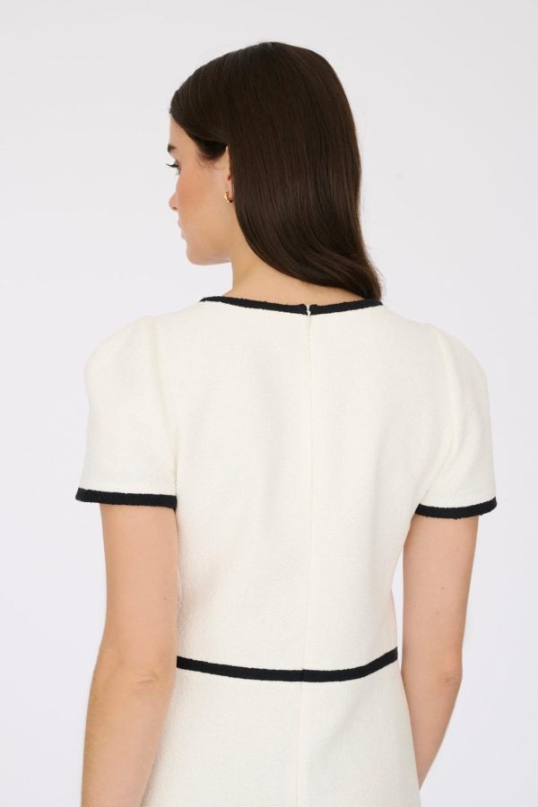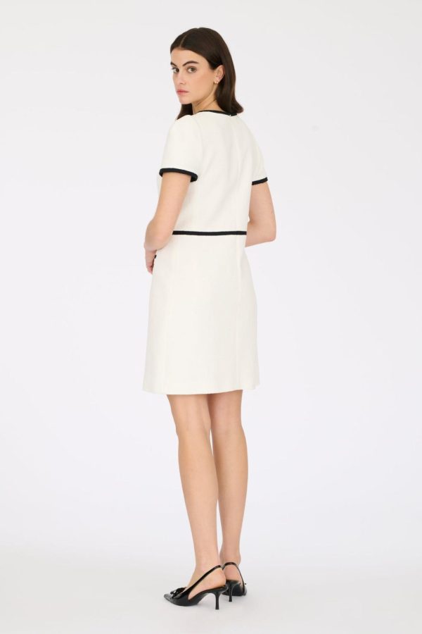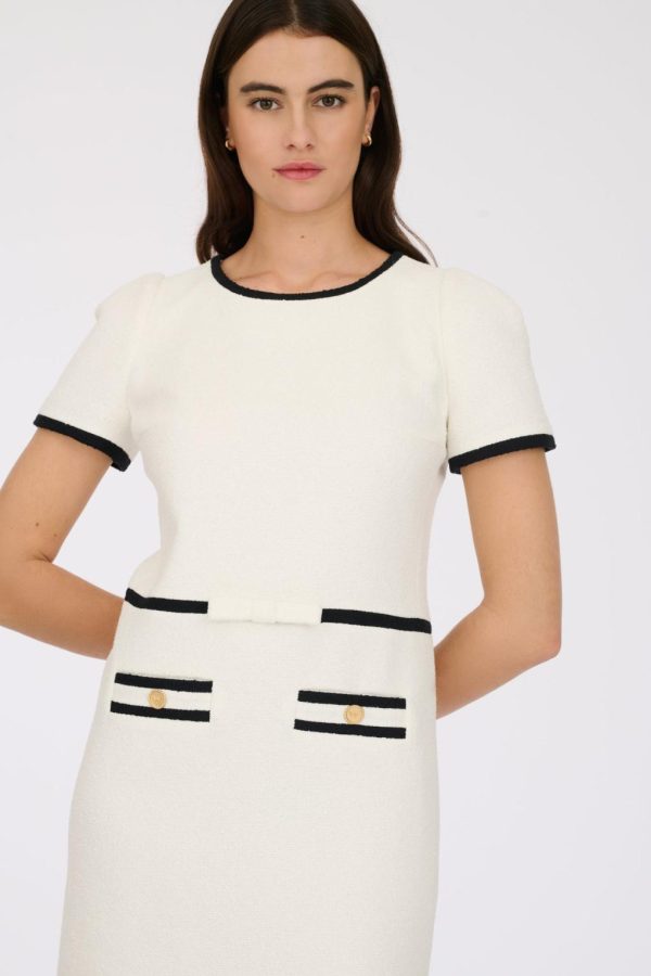 Short-sleeved, slim-fit boucle fabric dress with customised Weill buttons and false piped pockets