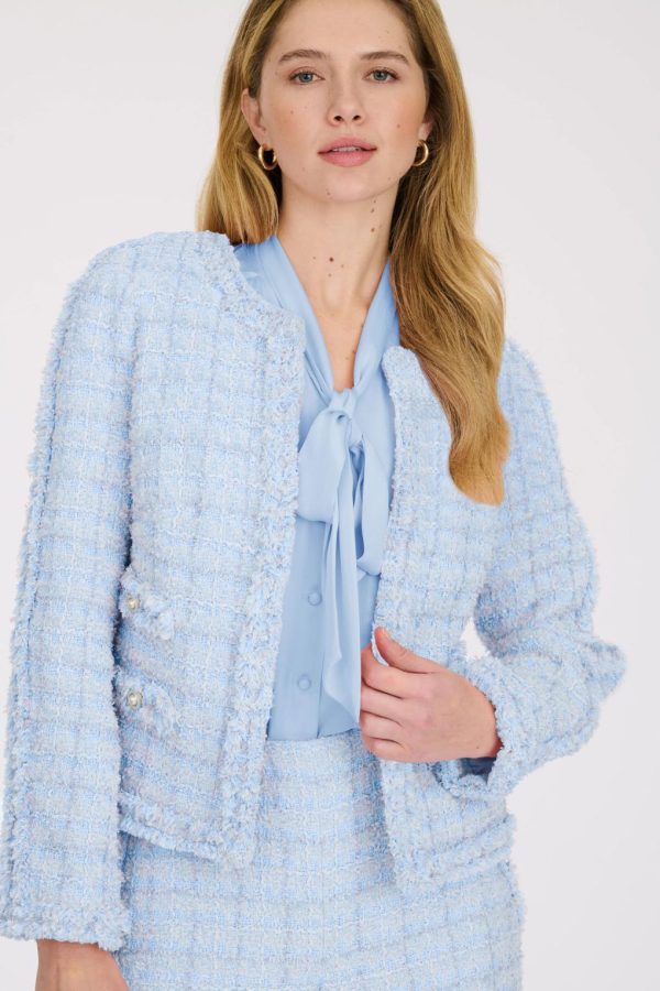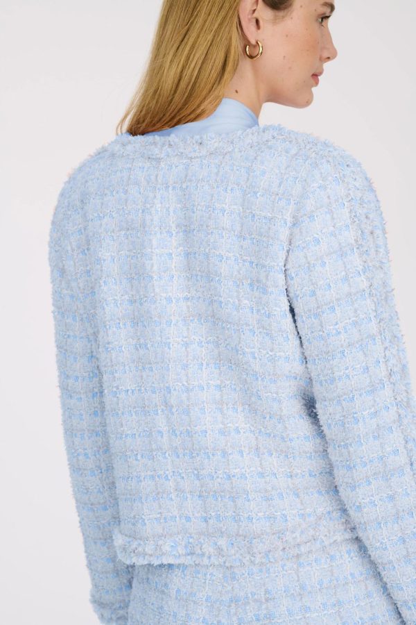 Short fringed tweed jacket, decorated with jewelled buttons