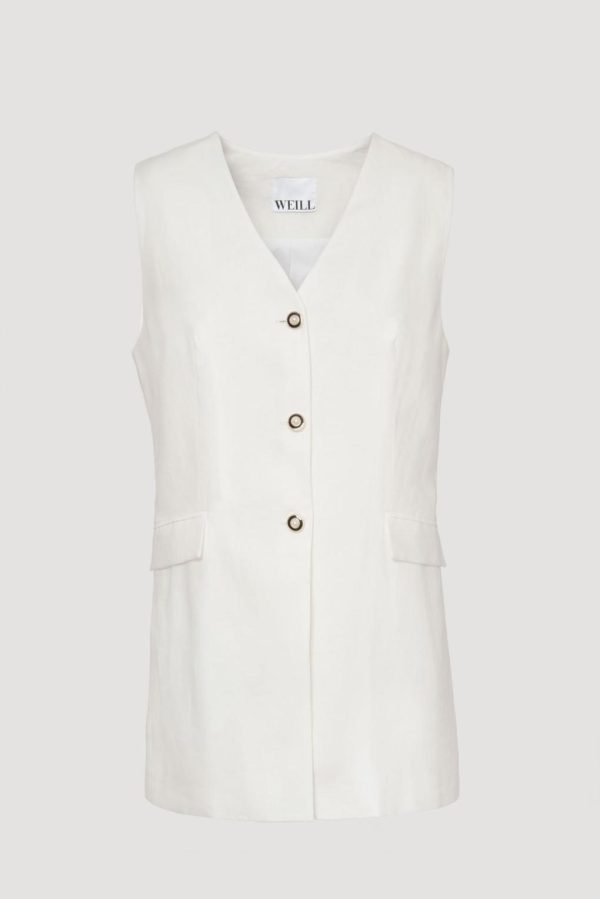 Linen gilet, embellished with customised Weill jewelled buttons