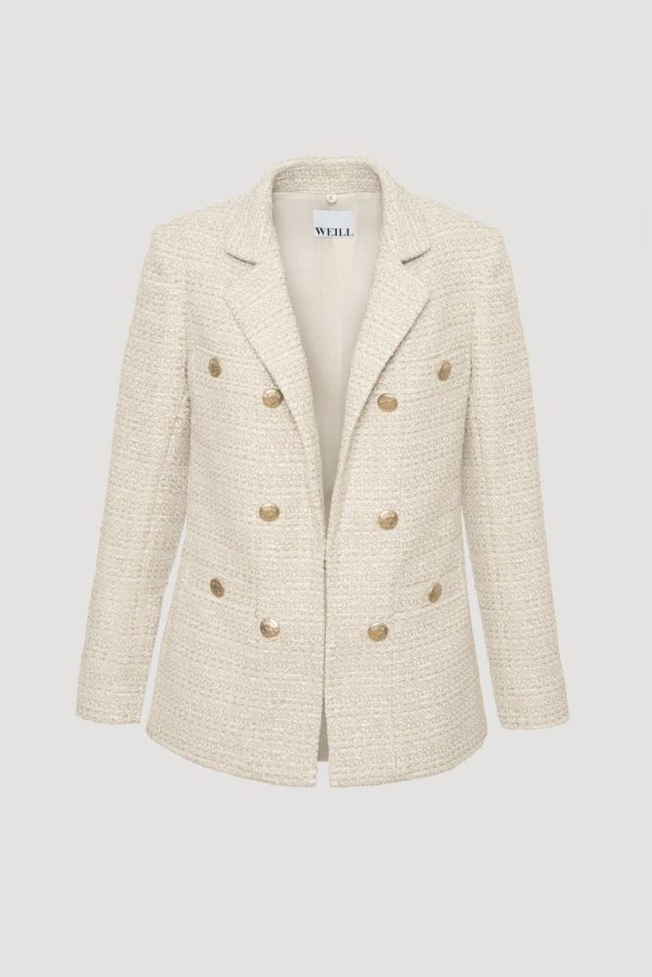 Women’s tweed blazer, adorned with Weill custom gold buttons