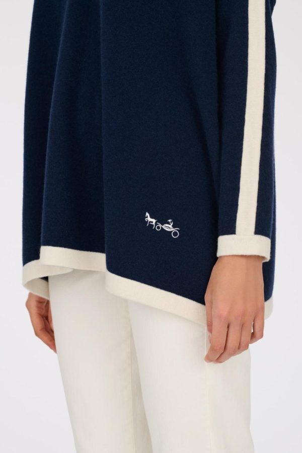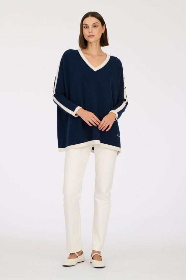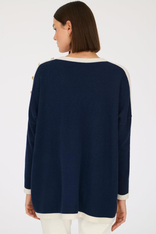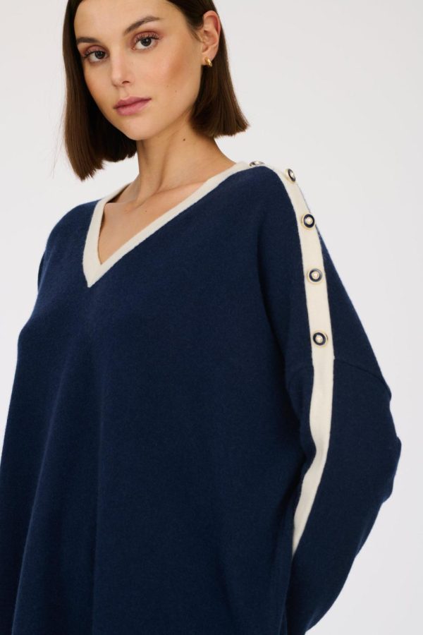 Two-tone cashmere sweater with a V-neck and long sleeves, fitted with customised Weill buttons