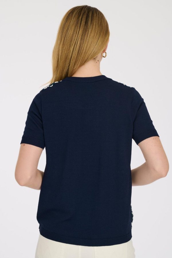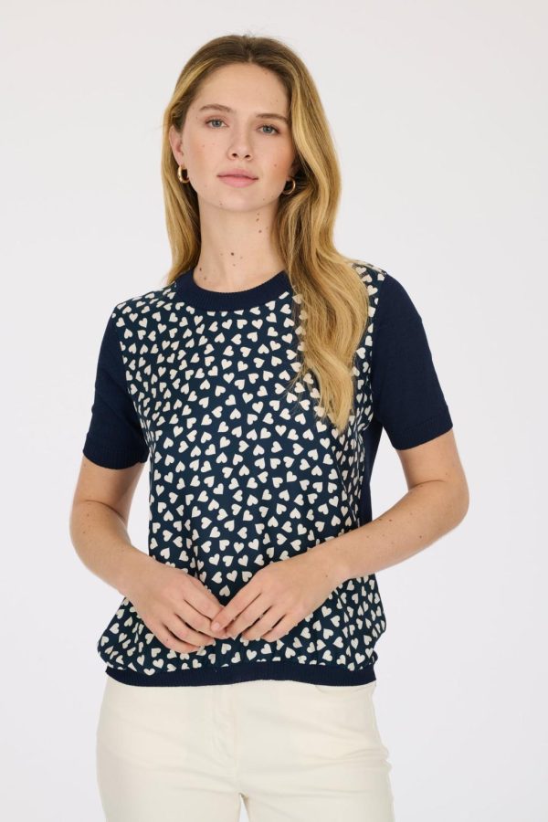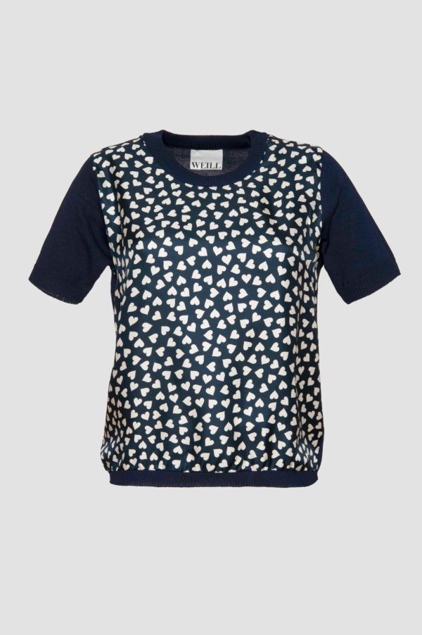 Weill women’s short-sleeved heart-print sweater with a round neck