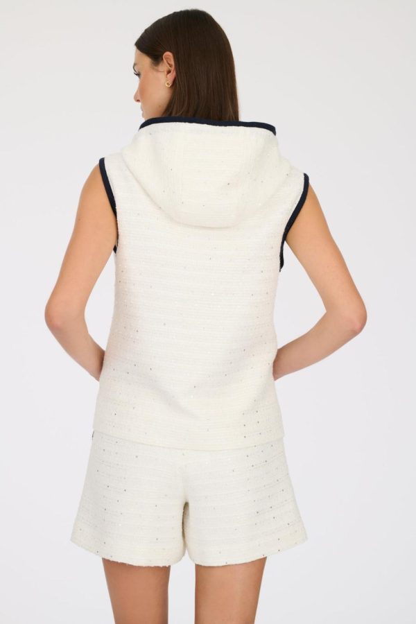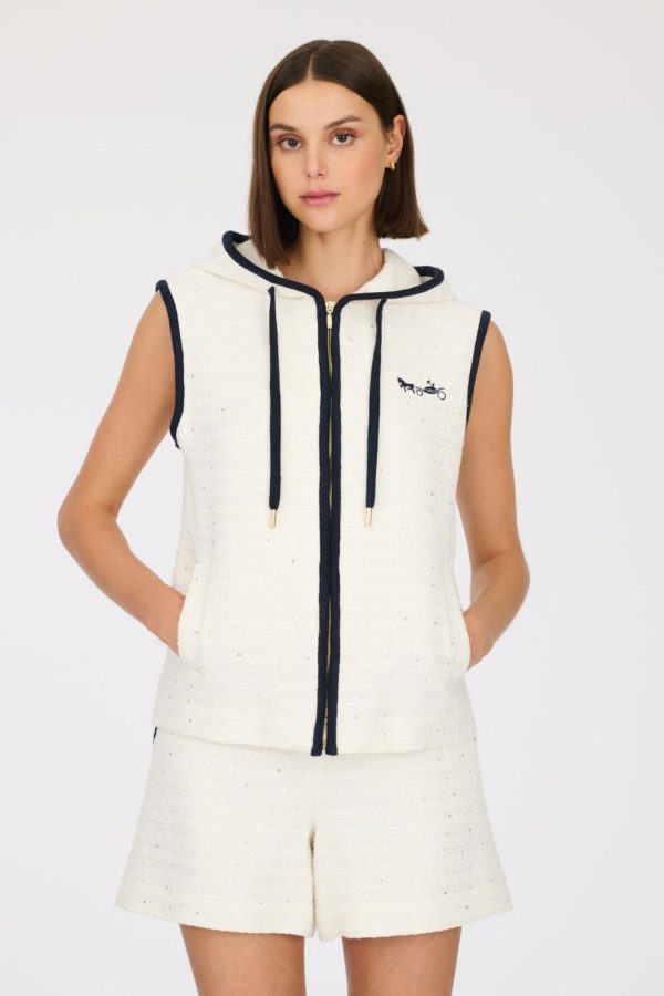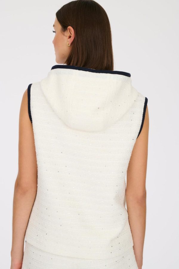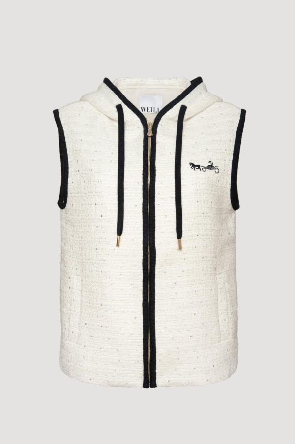 Sleeveless hoodie finished with contrasting piping and an embroidered logo for a sporty chic look.